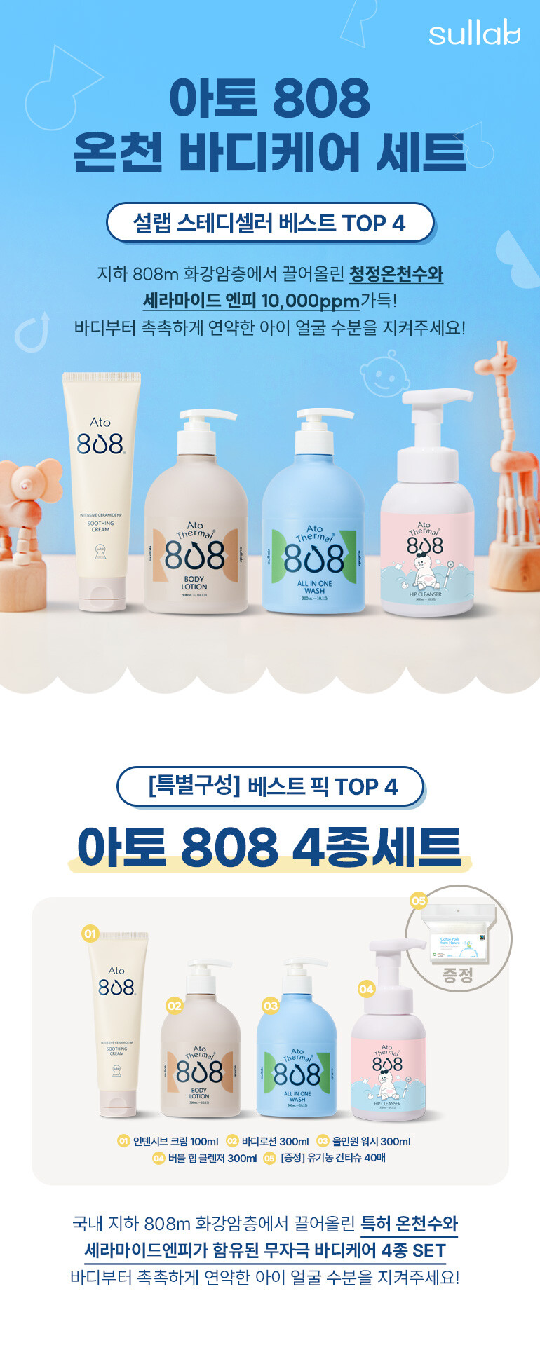 [산후조리원] 아토 808 떼르말 베이비 바디케어300ml 4종 세트 (+설랩슈 40매)